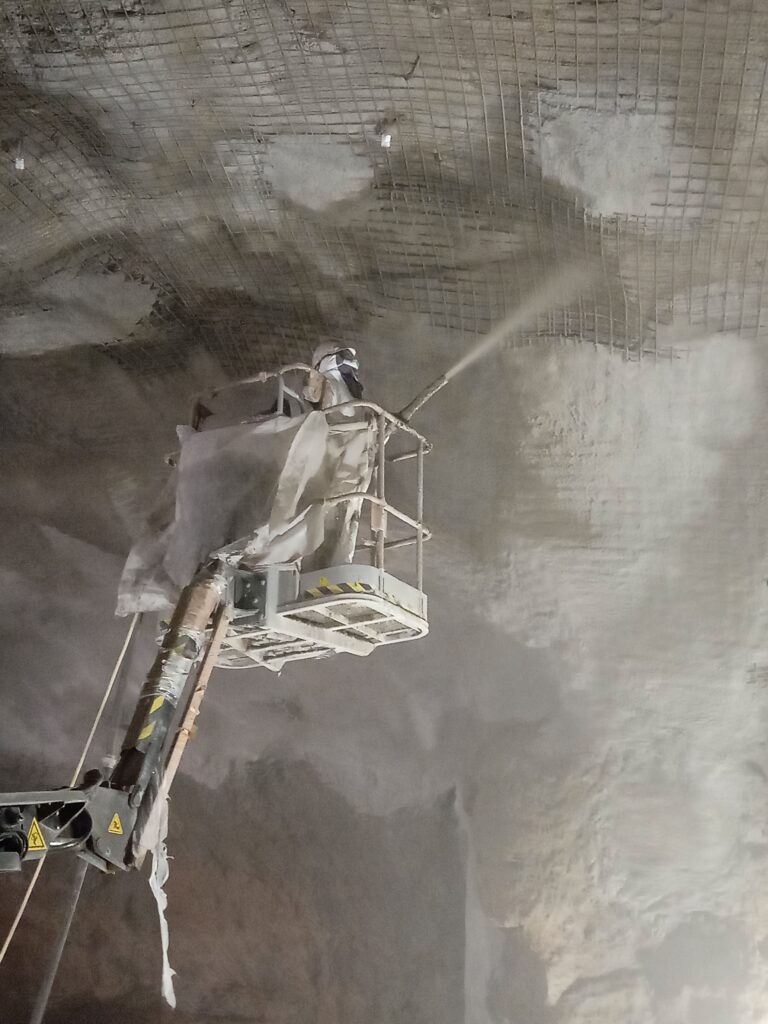 - Execução de betão projetado armado malha eletrosoldada para consolidação da abóbada;