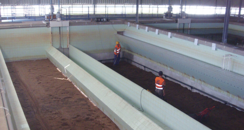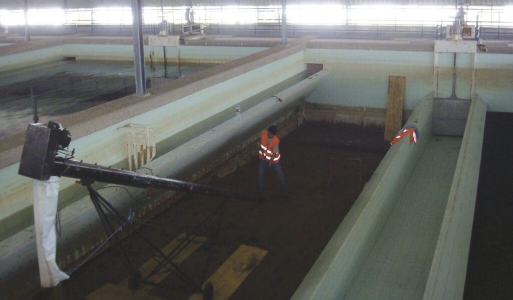 Seguiu-se um processo de ancoragem química estrutural e tratamento de juntas das placas filtrantes. O tratamento das fissuras estruturais do betão armado foi realizado através da injeção de resina de epóxido. A reparação de betão armado foi realizada através de picagem com martelos pneumáticos ligeiros, decapagem de armaduras e aplicação de argamassa tixotrópica.