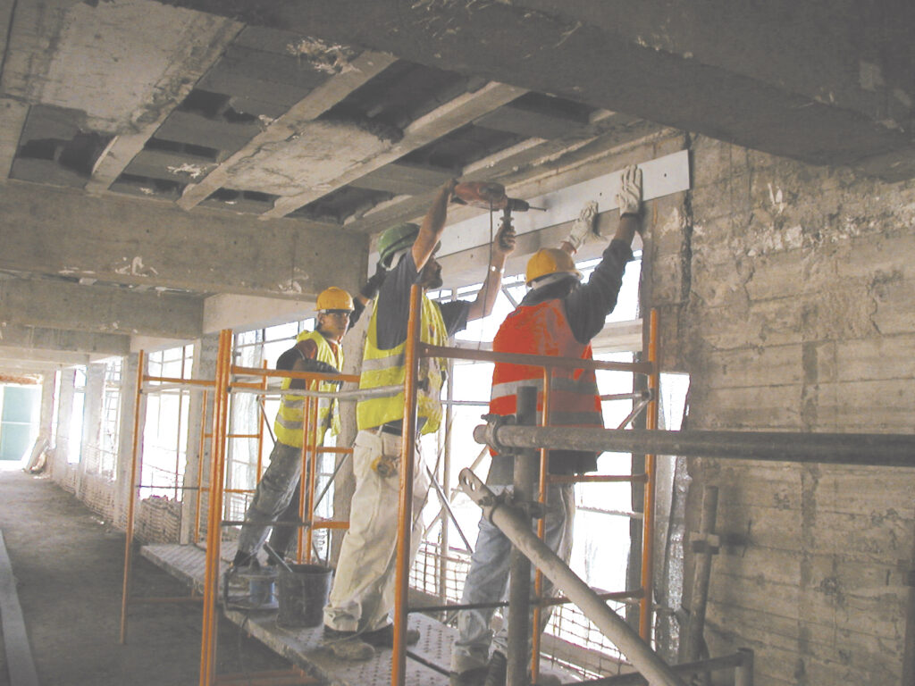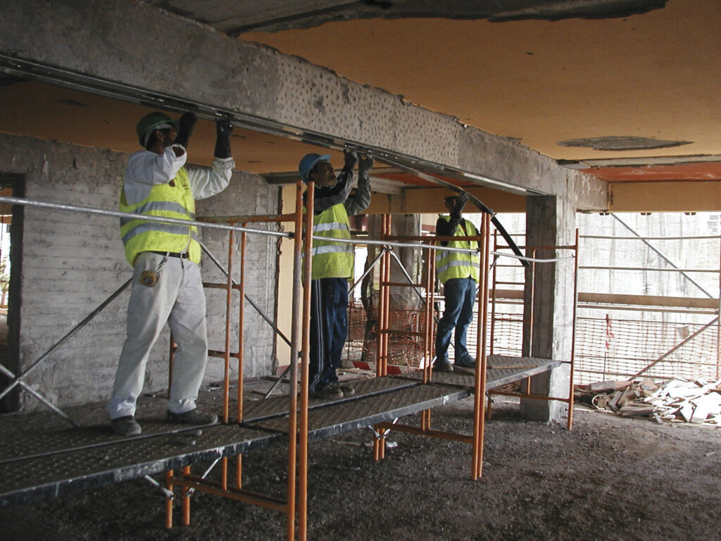 Foram identificadas deficiências ao nível das vigas em betão armado, tendo o projeto adotado as soluções de reforço de montagem de laminados de fibra de carbono e chapas metálicas para o aumento da capacidade resistente. No decorrer da execução dos trabalhos, foi verificada a necessidade da reparação do betão de pilares e lajes, dado o elevado estado de degradação e desagregação que alguns elementos apresentavam.