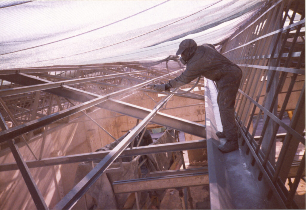 A cobertura foi integralmente removida. Após a limpeza dos elementos metálicos de cobertura, tratamento com primário específico para superfícies mistas e respetiva pintura, foi colocada nova cobertura, respeitando a constituição estrutural existente de cobertura em “shed”. O pavimento foi executado em betão armado com fibras metálicas e revestido a mosaico hidráulico.