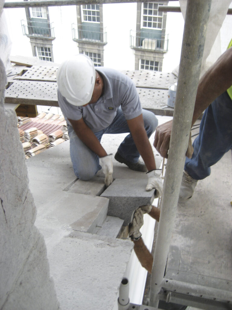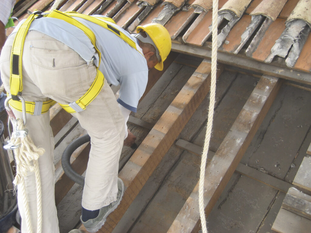 - Aplicação de anti-xilófago nas faces exteriores dos tetos de alfarge e nas estruturas das coberturas;